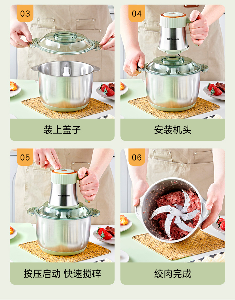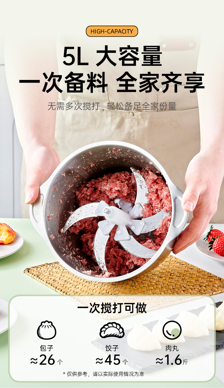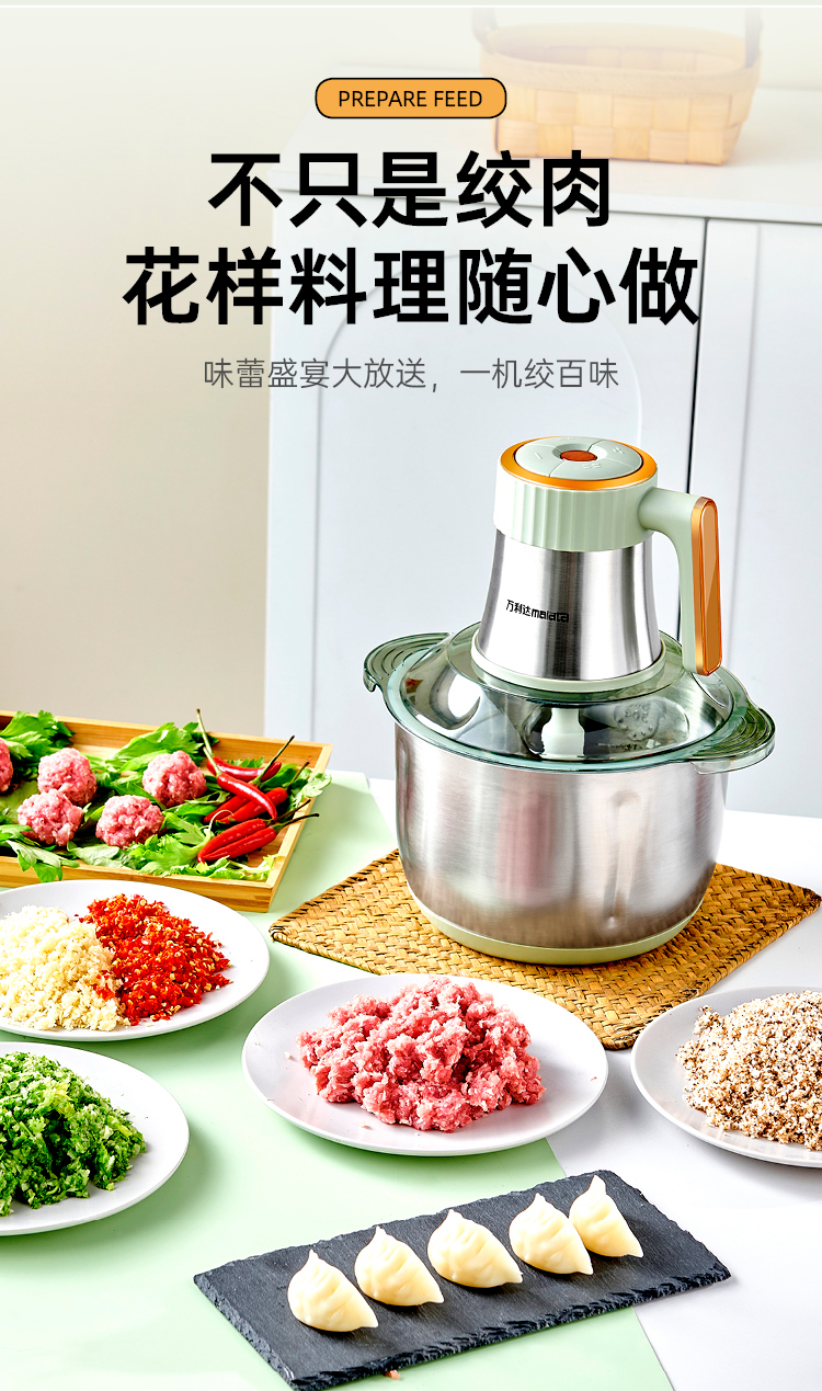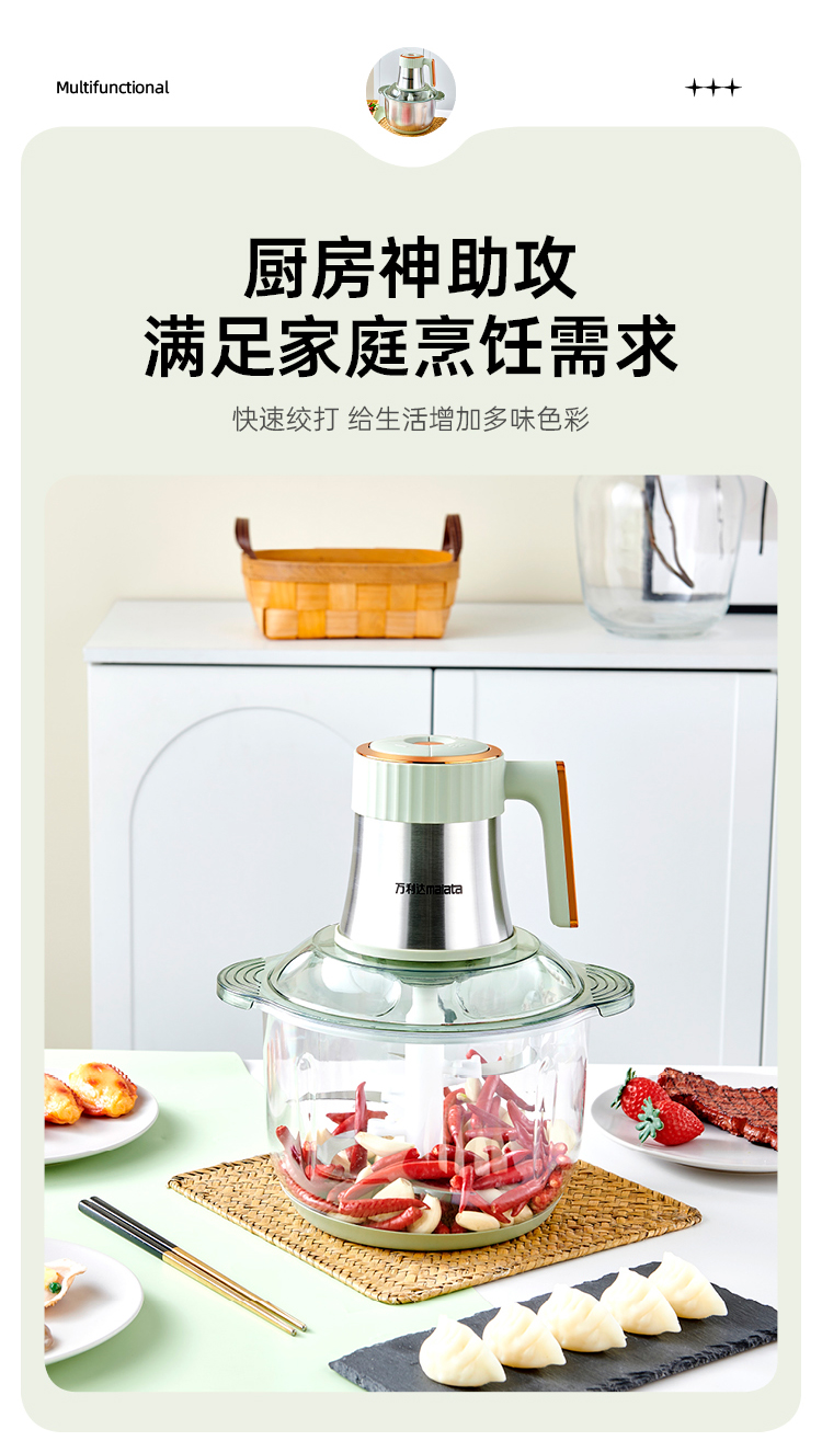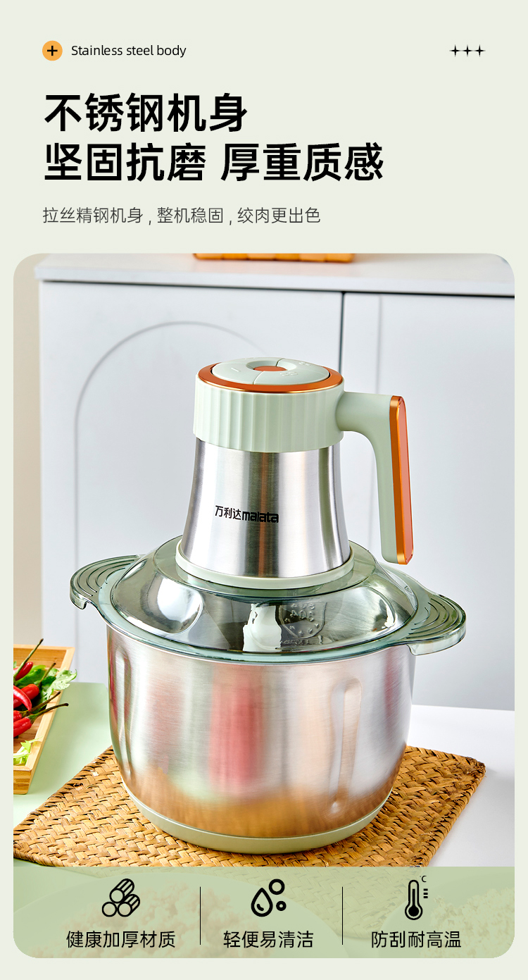 万利达malata大牌新款5升6页刀4速调节绞肉绞菜和面机榨汁机